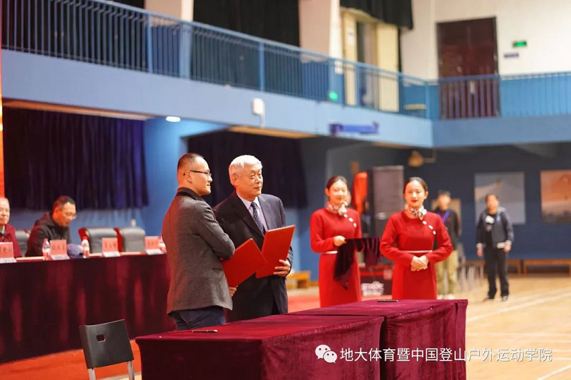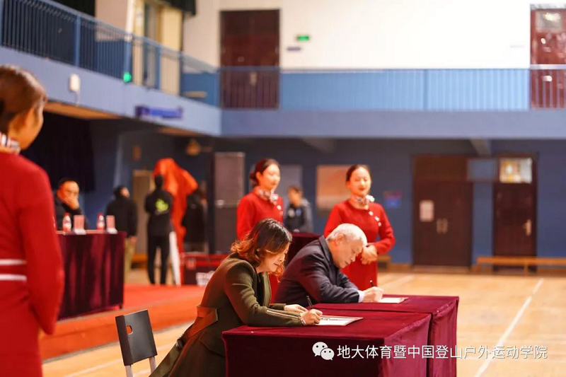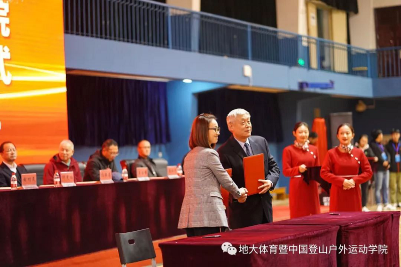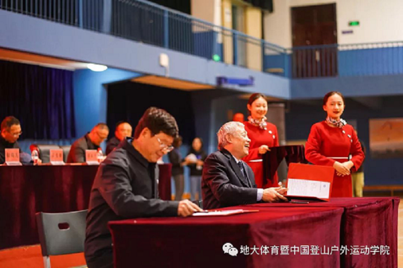 (武汉)副校长傅安洲同志在现场共同签署了《中国登山户外运动学院共建协议》、《登山运动史料整理、利用合作协议》;
