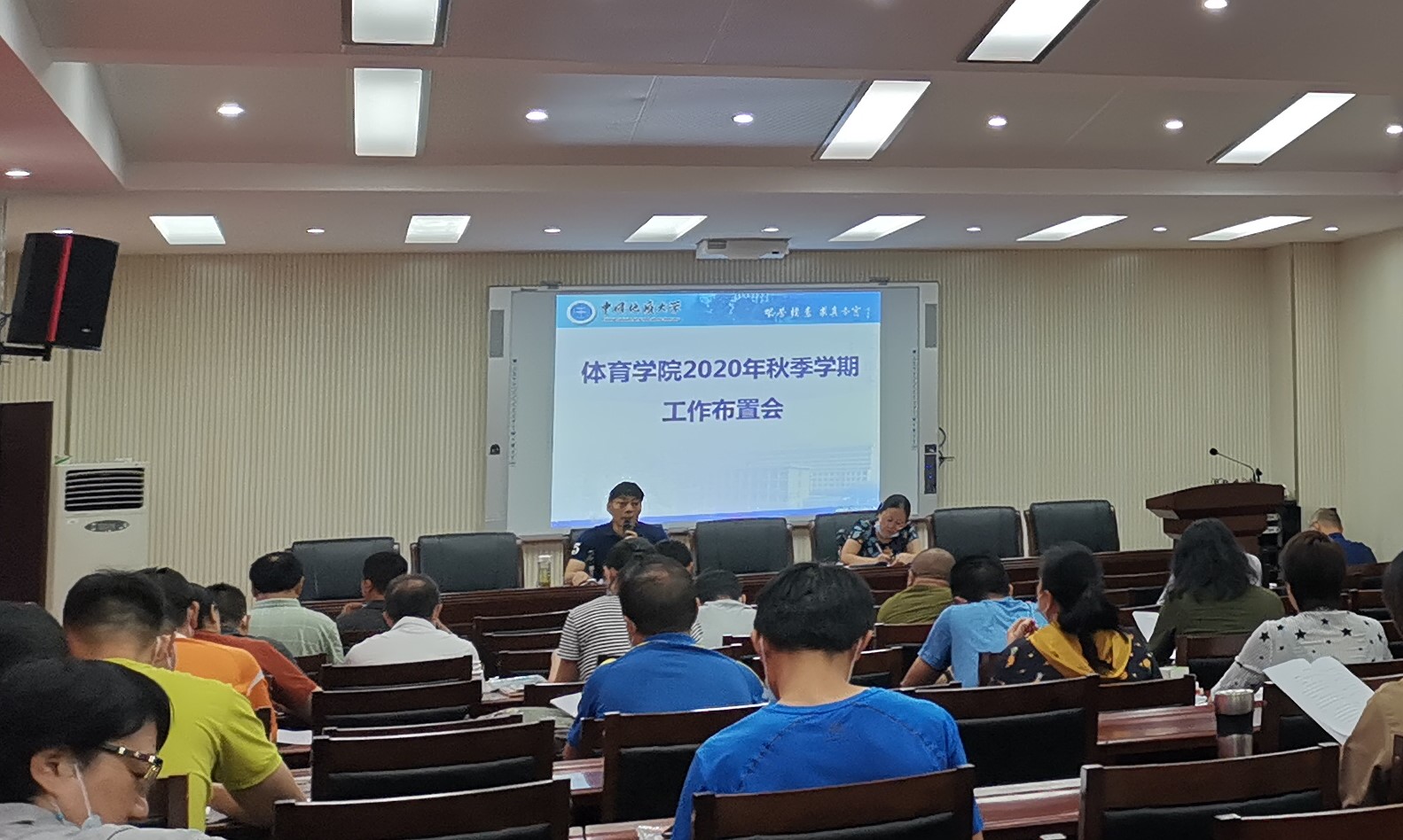 会议主要有三项议程。首先,董范院长回顾了学院暑假期间所完成的各项工作,并重点部署了2020年下半年新学期的学期安排及工作重点。主要包括:学校办学思想大讨论、“十四五”规划制定、加强体育工作意见的制定、教学以及科研工作、高水平运动队建设、学院防疫工作等。他强调,要做好三个聚焦,聚焦安全、聚焦使命、聚焦特色。