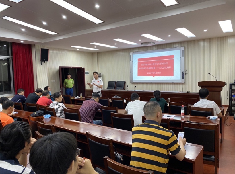 会议由董范院长做总结发言,他强调一定要贯彻落实习近平总书记关于研究生教育工作的重要指示,深刻领会2020年全国研究生教育会议精神,切实提升研究生培养质量。同时对学生提出要求:注重身心健康发展、认真对待科学研究工作,努力提升运动技术水平,为毕业就业打下牢靠的基础;对导师提出期许:履行职责,认真指导学生学位论文的撰写和修改,发挥优势,推动学生就业,为后宫电影院 的发展添砖加瓦。