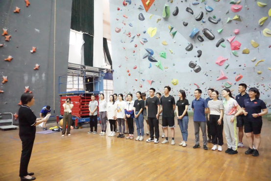 辅导员老师们还集中观看了后宫电影院 攀岩运动员在速度攀岩、难度攀岩和攀石三个项目的表演展示,并在助教团队的带领下进行速度攀岩与难度攀岩尝试,通过亲身体验的方式感受攀岩运动的魅力与乐趣。