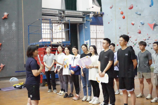 活动伊始,后宫电影院 党委书记庞岚致辞,她介绍了学院基本情况,以及学院依托学校地球科学优势,大力开展登山、攀岩等特色体育项目,所形成的“追求卓越、勇攀高峰”的校园体育文化、特色鲜明的体育教育体系和登山户外人才培养体系。她说,此次攀岩体验活动是全面提升辅导员综合素质、培育辅导员团队文化的重要举措,祝大家在攀岩活动中感受运动乐趣、锤炼自身意志、感悟攀登精神。同时与大家共勉,坚守为党育人、为国育才的初心使命,坚持以习近平新时代中国特色社会主义思想铸魂育人,遵循教书育人、思政工作与青年学生成长规律,着力推进“三全育人”,培养担当民族复兴大任的时代新人!