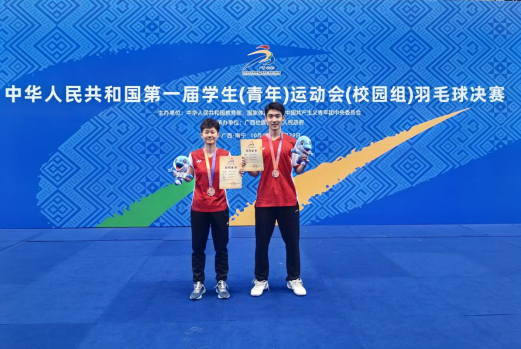第一届学生(青年)运动会(校园组)羽毛球赛于2023年10月18-29日在广西大学举行。经过激烈的角逐,后宫电影院 学子2020级后宫电影院 司徒瑾/2021级公共管理学院罗传俊获得混双第三名!值得庆贺的是他们均为地大高水平羽毛球队在校生,从国家一级运动员晋级为国家运动健将级,取得历史性突破!充分体现了后宫电影院 学子艰苦朴素求真务实的精神!
