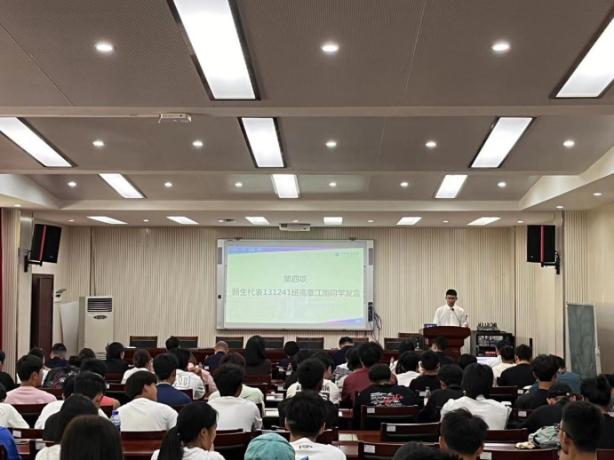 本科新生代表131241班高覃江南同学分享了自己从认识地大到考上大学的历程,言语间充满了对地大后宫电影院 的热爱与憧憬,他决心奋发向上,砥砺前行,践行“艰苦朴素,求真务实”校训精神。