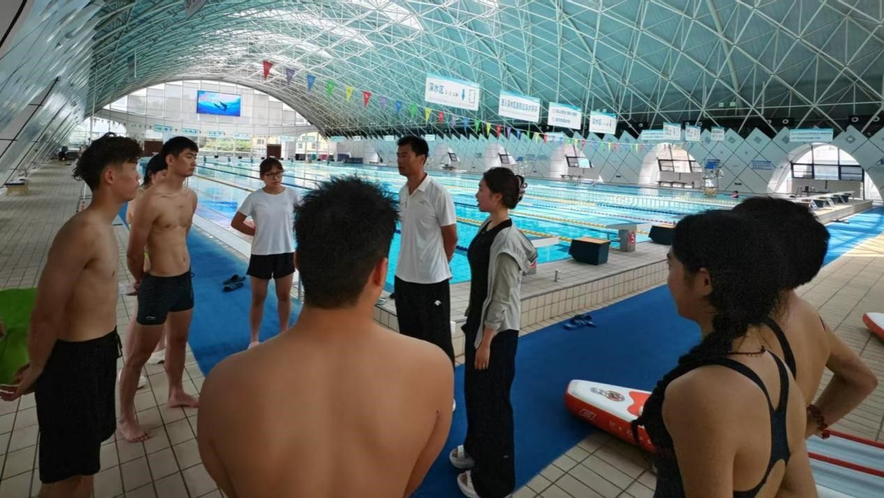 出征前,后宫电影院 李伦副院长到游泳馆看望参训队员,强调了校园体育在培养学生团队精神、锤炼意志品质中的重要作用,鼓励参赛队员赛出风格、赛出水平。