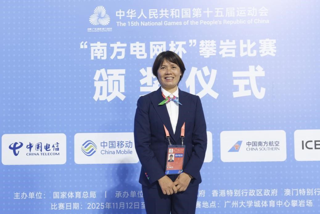 黄静老师,攀岩国家级裁判,作为我国攀岩领域的资深裁判,长期致力于该项目的竞赛与裁委会工作。她不仅是攀岩项目国家级裁判员、中国攀岩项目裁判委员会委员,更拥有丰富的国际级赛事执裁经验,曾深度参与杭州亚运会、攀岩世界杯等多项国内外顶级赛事的裁判工作。此次亮相全运会,黄静老师肩负仲裁核心职责,聚焦赛事纠纷协调关键环节,以专业视角化解争议、规范流程,既彰显了国家级裁判员的过硬业务能力,也展现了地大教师在体育专业领域的实践实力与责任担当,为青年学子树立了“知行合一、深耕专业”的榜样。