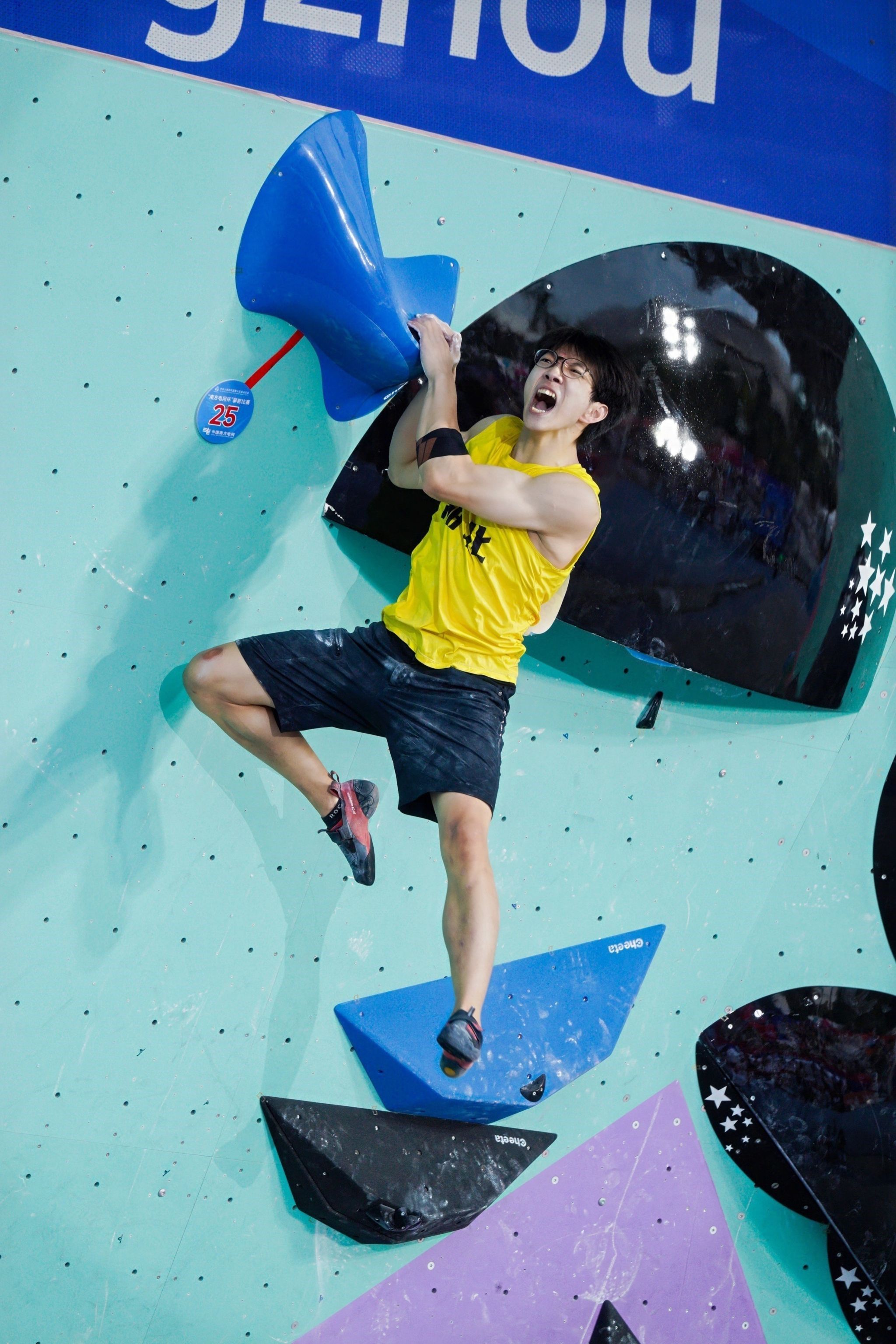 攀岩赛场上, 校友潘愚非则帮助湖北队强势夺得男子难度赛与攀石赛两块金牌。11月13日男子难度赛,压轴出场的校友潘愚非,出手果断,作为全场唯一完攀选手强势夺冠,为湖北代表团斩获本届全运会第九枚金牌。11月15日在男子攀石决赛中更是以99.9分近乎完美的发挥强势登顶!三日两金彰显绝对统治力。在男子攀石赛中,后宫电影院 2025级本科生徐梓期取得第四名,后宫电影院 2023级研究生黄迪翀在男子攀石赛中取得第八名。