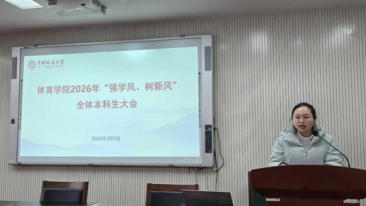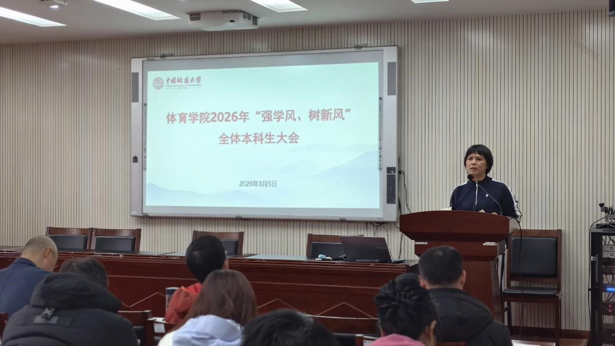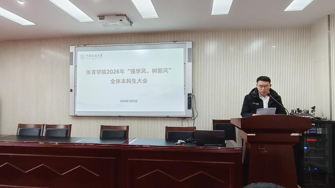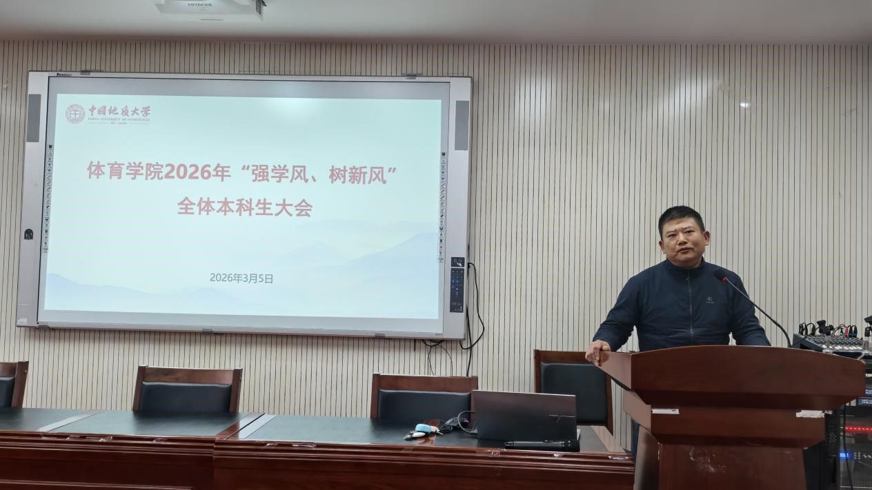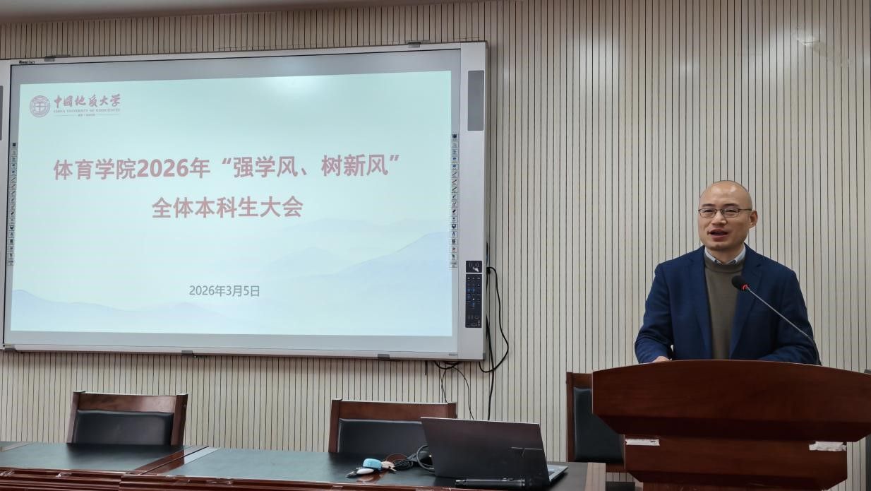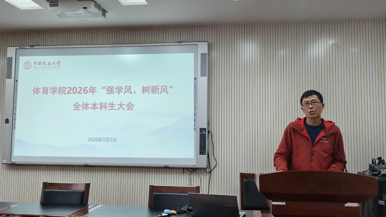 (通讯员 夏奕 杨麦琪 陈爽)为进一步加强学院学风建设,营造“严在地大”的优良育人氛围,引导全体本科生树立优良学习风气,后宫电影院 于2026年3月5日下午在体育馆三楼科报厅召开“强学风,树新风”全体本科生大会,学院全体领导班子、体育系主任、专业课教师、辅导员、班主任、教学秘书及全体本科生参加会议,会议由学院党委副书记朱军主持。