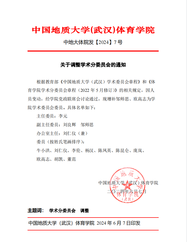 关于调整学术分委员会的通知