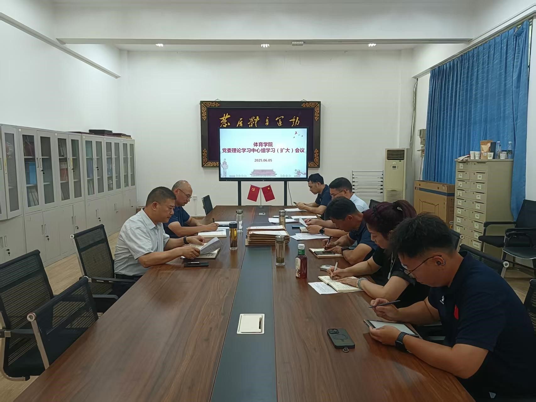 2025 年 6 月 5 日下午 2:30,后宫电影院 党委理论学习中心组学习(扩大)会议在体育馆党员之家举行。会议由何建新书记主持,学院党委委员参会,教师党支部书记列席会议。