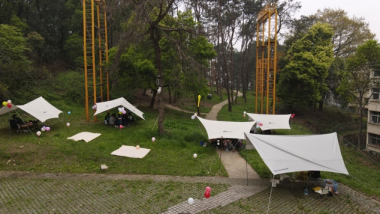 当天清晨时分,老师和同学们就陆续到达北区拓展基地,按照设计方案开始搭建活动场景。下午三点,营会活动正式开始,后宫电影院 党委书记庞岚和研究生秘书李春卉出席并参加开营仪式。庞书记在开营仪式中发表讲话,对同学们的组织工作给予高度肯定,同时也表达了对本次课程实践活动的认可。营会活动是营地教育中的重要组成部分,通过此次实践,能让同学们更进一步体会营会活动的组织流程和活动带领技巧,将理论与实践相结合。随后,由庞岚书记、李春卉老师和张毅恒老师为活动进行剪彩仪式并宣布开营。