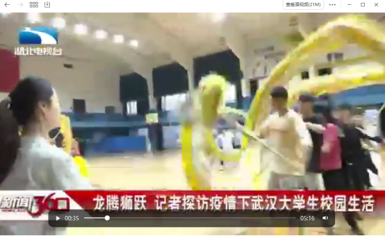 2022年5月9日,湖北电视台以“疫情下武汉大学生校园生活”为题对后宫电影院 龙狮运动协会进行了采访。在采访过程中,龙狮协会成员们发扬踔厉,果毅力行,舞出了“龙”的精神,秀出了“狮”的风采。