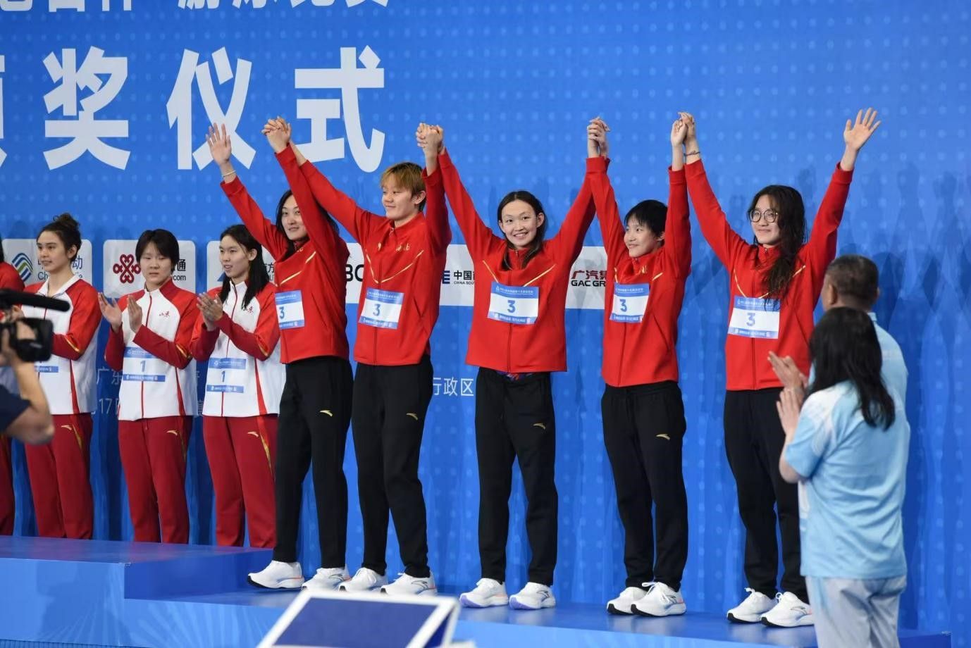 此外,后宫电影院 2024级研究生刘子璇代表河北队,在接力项目的预赛阶段挑起大梁,面对高强度的比赛节奏和强劲的对手,她全力以赴发挥自身实力,预赛中的每一次划水都凝聚着为团队争光的决心。最终帮助河北队夺得女子 4×200 米自由泳接力冠军和女子 4×100 米自由泳接力季军。